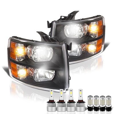 This Chevy Silverado 3500HD LED Headlights will fit 2007, 2008, 2009, 2010, 2011, 2012, 2013, 2014 Chevy Silverado 3500HD. Chevy Silverado 3500HD 2007-2014 Black Headlights LED Bulbs Complete Kit also features LED Headlight Bulbs Included. Replace or upgrade your Chevy Silverado 3500HD LED Headlights with our Chevy Silverado 3500HD 2007-2014 Black Headlights LED Bulbs Complete Kit.