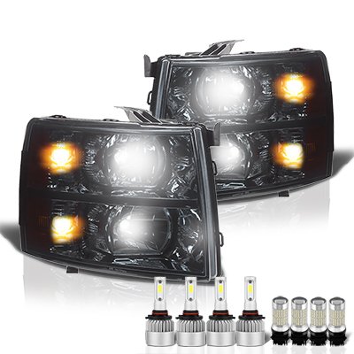 Chevy Silverado 2007-2013 Smoked Headlights LED Bulbs Complete Kit