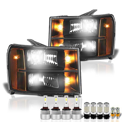 GMC Sierra Denali 2008-2013 Black Headlights LED Bulbs Complete Kit