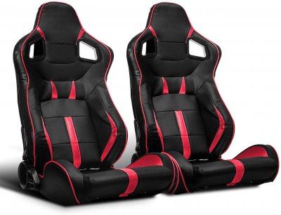 Black Racing Bucket Seats Reclining Leather Red Strip also features Black PVC leather, Reclining adjustable seat, Aftermarket racing bucket seats, Compatible with aftermarket mounting brackets, Mounting brackets are not included, Installation instruction is not included, Professional installation highly recommended, Driver and Passenger Sides Included. Replace or upgrade your Racing Bucket Seats with our Black Racing Bucket Seats Reclining Leather Red Strip.