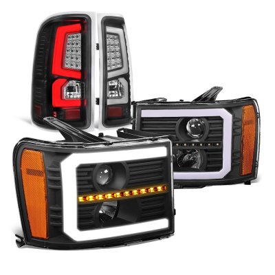 GMC Sierra 2007-2013 Black DRL Projector Headlights Dynamic Signal LED Tail Lights