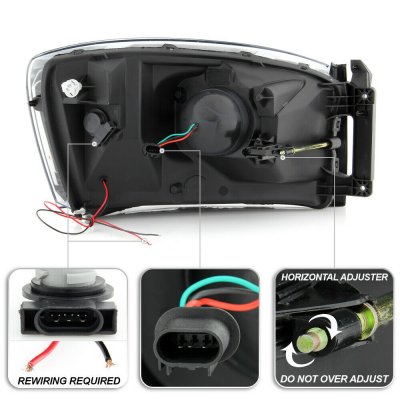 Dodge Ram 2500 2006-2009 Black LED Tube Projector Headlights