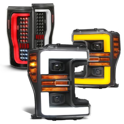 Ford F250 Super Duty 2017-2019 Black Switchback DRL Projector Headlights LED Tail Lights