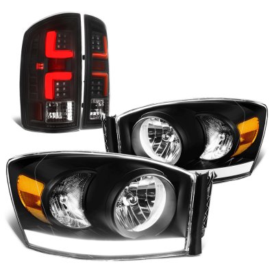 This Dodge Ram Headlights Set will fit 2007, 2008 Dodge Ram. Dodge Ram 2007-2008 Black Tube DRL Headlights Custom LED Tail Lights also features Black Housing Clear Lens, Low Beam H13 excluded light bulb, High Beam H13 excluded light bulb,. Replace or upgrade your Dodge Ram Headlights Set with our Dodge Ram 2007-2008 Black Tube DRL Headlights Custom LED Tail Lights.