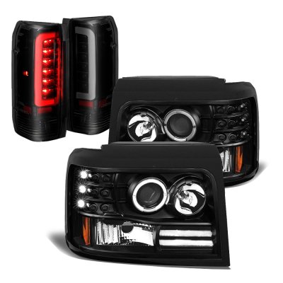 Ford F350 1992-1996 Black Halo Projector Headlights Tinted Tube LED Tail Lights