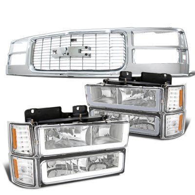 This GMC Jimmy Grille and Headlight Conversion will fit 1994 GMC Jimmy. Replace or upgrade your GMC Jimmy Grille and Headlight Conversion with our 1994 GMC Jimmy Full Size Chrome Grille LED DRL Headlights Bumper Lights.