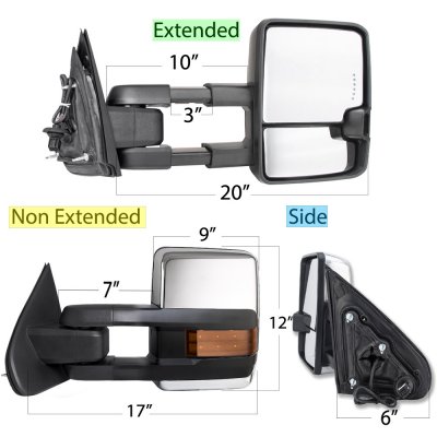 This GMC Sierra 2500HD Towing Mirrors will fit 2015, 2016, 2017, 2018, 2019 GMC Sierra 2500HD. GMC Sierra 2500HD 2015-2019 Power Fold Towing Mirrors Premium Plus also features Chrome Mirror Caps, Power Mirror Angle Adjustment, Upper & Lower Heated Mirror Glass, Dual Function LED Signal & Running Lights, Integrated LED Turn Signal Lights, LED Rear Guidance Lamps (Wiring Required), LED Puddle Lights (Wiring Required), Manual Extension, Power Folding. Replace or upgrade your GMC Sierra 2500HD Towing Mirrors with our GMC Sierra 2500HD 2015-2019 Power Fold Towing Mirrors Premium Plus.
