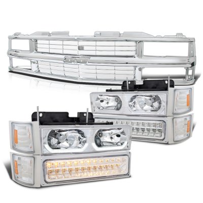 Chevy 1500 Pickup 1988-1993 Chrome Grille and LED DRL Headlights Bumper Lights