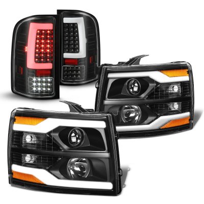 This Chevy Silverado Headlights Set will fit 2007, 2008, 2009, 2010, 2011, 2012, 2013 Chevy Silverado. Replace or upgrade your Chevy Silverado Headlights Set with our Chevy Silverado 2007-2013 Black Facelift DRL Projector Headlights LED Tail Lights.