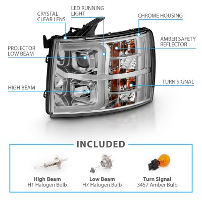 Chevy Silverado 3500HD 2007-2014 DRL Tube Projector Headlights