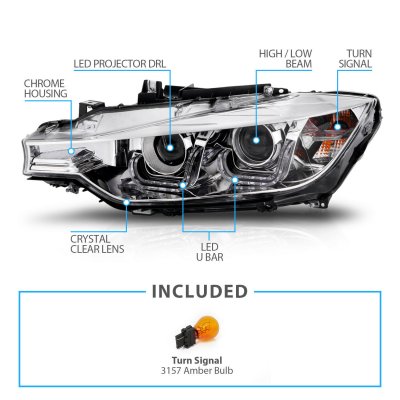 This BMW 3 Series Projector Headlights will fit 2012, 2013, 2014, 2015 BMW 3 Series. BMW 3 Series F30 Sedan 2012-2015 LED Halo HID Projector Headlights also features Projector Style Lighting,Direct Replacement,Easy Installation. Replace or upgrade your BMW 3 Series Projector Headlights with our BMW 3 Series F30 Sedan 2012-2015 LED Halo HID Projector Headlights.