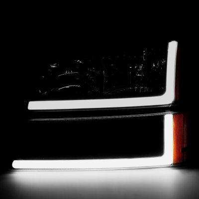 Chevy Silverado 1500HD 2003-2006 Black Smoked LED DRL Headlights Bumper Lights