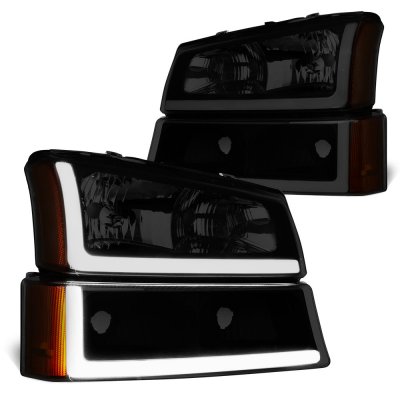 Chevy Silverado 2500HD 2003-2006 Black Smoked LED DRL Headlights Bumper Lights