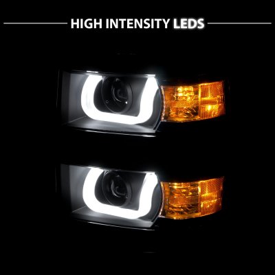 Chevy Silverado 1500 2014-2015 Black Projector Headlights LED U-Bar