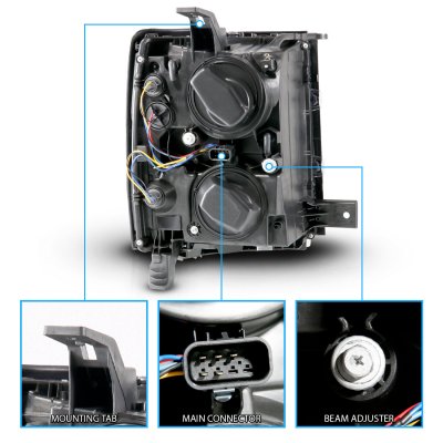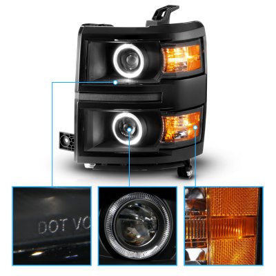 Chevy Silverado 1500 2014-2015 Black Halo Projector Headlights