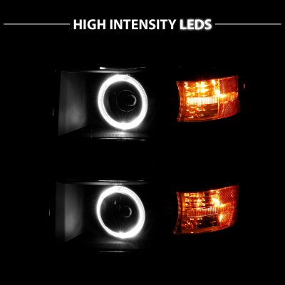 • Chevy Silverado 1500 2014-2015 Black Halo Projector Headlights