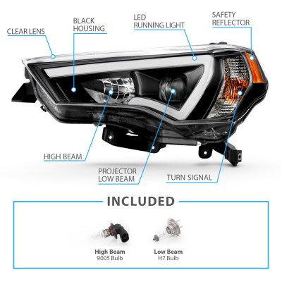 This Toyota 4Runner Projector Headlights will fit 2014, 2015, 2016, 2017, 2018, 2019, 2020, 2021, 2022 Toyota 4Runner. Toyota 4Runner 2014-2022 Black LED DRL Projector Headlights also features Black Housing Clear lens, Low Beam H7, High Beam 9005. Replace or upgrade your Toyota 4Runner Projector Headlights with our Toyota 4Runner 2014-2022 Black LED DRL Projector Headlights.