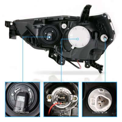 • Toyota 4Runner 2014-2022 Black LED DRL Projector Headlights