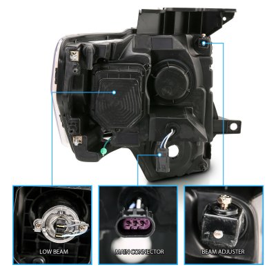 This Ford F150 Projector Headlights will fit 2009, 2010, 2011, 2012, 2013, 2014 Ford F150. Ford F150 2009-2014 Projector Headlights LED DRL A4 also features Projector Style Lighting,Direct Replacement,Easy Installation. Replace or upgrade your Ford F150 Projector Headlights with our Ford F150 2009-2014 Projector Headlights LED DRL A4.