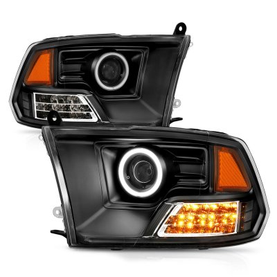 Dodge Ram 2500 2010-2018 Black Projector Headlights LED Halo Signals
