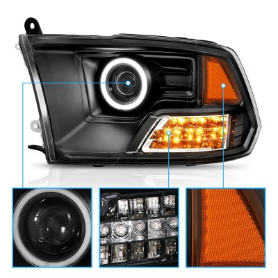 • Dodge Ram 2500 2010-2018 Black Projector Headlights LED Halo Signals