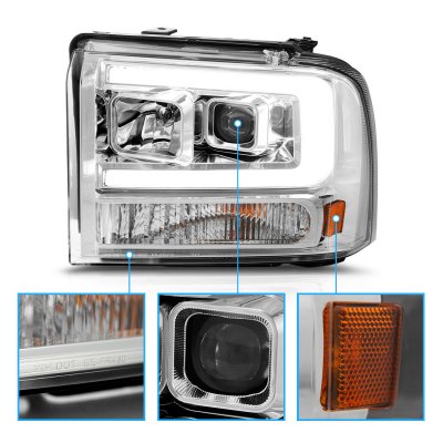 This Ford Excursion Projector Headlights will fit 2005 Ford Excursion. 2005 Ford Excursion LED DRL Projector Headlights also features Projector Style Lighting,Direct Replacement,Easy Installation. Replace or upgrade your Ford Excursion Projector Headlights with our 2005 Ford Excursion LED DRL Projector Headlights.