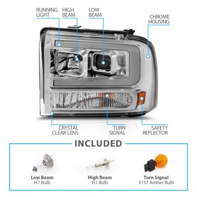 This Ford F350 Projector Headlights will fit 2005, 2006, 2007 Ford F350. Ford F350 Super Duty 2005-2007 LED DRL Projector Headlights also features Projector Style Lighting,Direct Replacement,Easy Installation. Replace or upgrade your Ford F350 Projector Headlights with our Ford F350 Super Duty 2005-2007 LED DRL Projector Headlights.