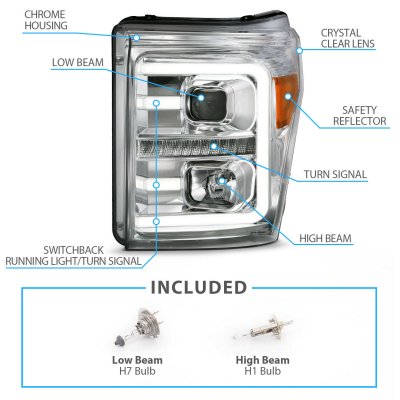 This Ford F550 Projector Headlights will fit 2011, 2012, 2013, 2014, 2015, 2016 Ford F550. Ford F550 Super Duty 2011-2016 Projector Headlights LED DRL also features Projector Style Lighting,Direct Replacement,Easy Installation. Replace or upgrade your Ford F550 Projector Headlights with our Ford F550 Super Duty 2011-2016 Projector Headlights LED DRL.