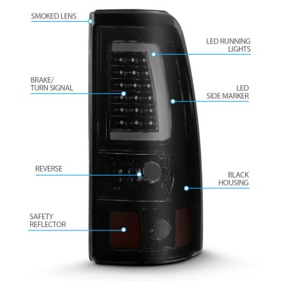 Chevy Silverado 2500 1999-2002 Black Smoked LED Tail Lights Tube