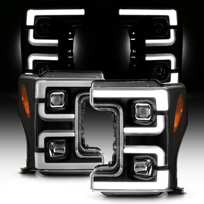 Ford F250 Super Duty 2017-2019 Black Projector Headlights LED DRL S1