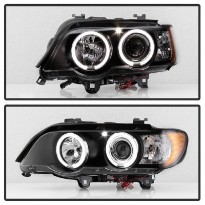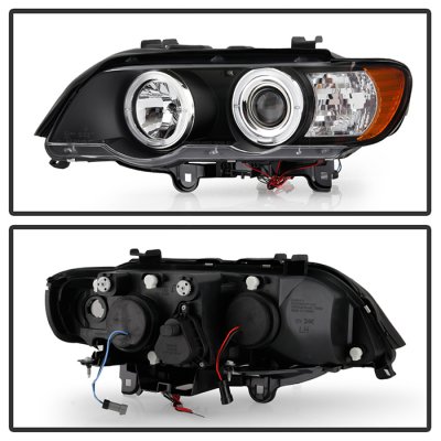 This BMW X5 Projector Headlights will fit 2001, 2002, 2003 BMW X5. BMW X5 2001-2003 Black Halo Projector Headlights also features Projector Style Lighting,Direct Replacement,Easy Installation. Replace or upgrade your BMW X5 Projector Headlights with our BMW X5 2001-2003 Black Halo Projector Headlights.