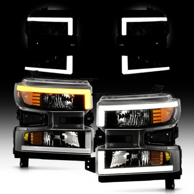 Chevy Silverado 1500 2019-2021 Black Headlights LED DRL Signals