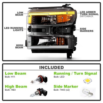 This Chevy Silverado Euro Headlights will fit 2019, 2020, 2021 Chevy Silverado. Replace or upgrade your Chevy Silverado Euro Headlights with our Chevy Silverado 1500 2019-2021 Black Headlights LED DRL Signals.