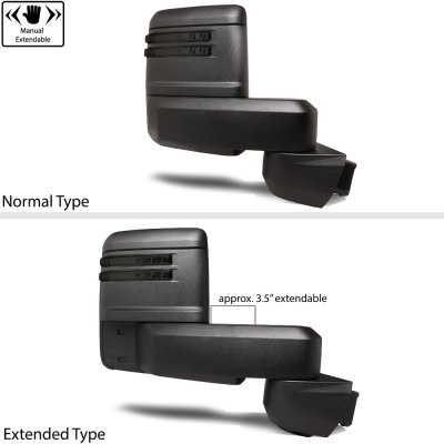 This Chevy Silverado 3500HD Towing Mirrors will fit 2020, 2021, 2022, 2023, 2024, 2025 Chevy Silverado 3500HD. Chevy Silverado 3500HD 2020-2025 Towing Mirrors Smoked LED Lights Power Heated Glass also features LED Running Lights, LED Signal Lights, LED Puddle Lights, Power Mirror Angle Adjustment, Heated Mirror, LED Rear Guidance Lamps, Manual Extend by Telescoping, Manual Folding, Include Blind Spot Monitor (BSM). Replace or upgrade your Chevy Silverado 3500HD Towing Mirrors with our Chevy Silverado 3500HD 2020-2025 Towing Mirrors Smoked LED Lights Power Heated Glass.