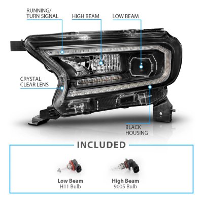 • Ford Ranger XL 2019-2023 Black Projector Headlights LED DRL Switchback Signals