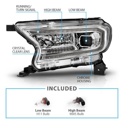 This Ford Ranger Projector Headlights will fit 2019, 2020, 2021, 2022, 2023 Ford Ranger. Ford Ranger XL 2019-2023 Projector Headlights LED DRL Switchback Signals also features Projector Style Lighting,Direct Replacement,Easy Installation. Replace or upgrade your Ford Ranger Projector Headlights with our Ford Ranger XL 2019-2023 Projector Headlights LED DRL Switchback Signals.