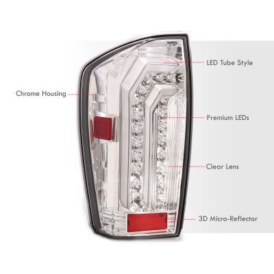This Toyota Tacoma LED Tail Lights will fit 2016, 2017, 2018, 2019, 2020, 2021, 2022, 2023 Toyota Tacoma. Replace or upgrade your Toyota Tacoma LED Tail Lights with our Toyota Tacoma 2016-2023 Clear LED Tail Lights Sequential Signals J3.