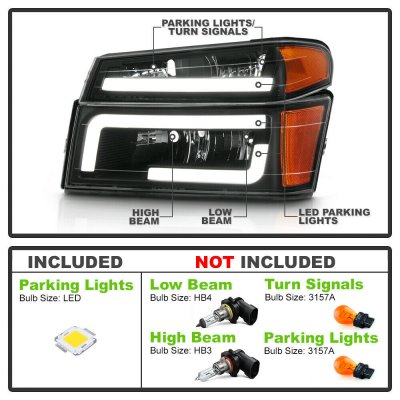 • GMC Canyon 2004-2012 Black LED DRL Headlights Bumper Lights