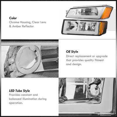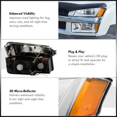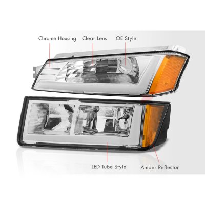This Chevy Avalanche Euro Headlights will fit 2002, 2003, 2004, 2005, 2006 Chevy Avalanche. Replace or upgrade your Chevy Avalanche Euro Headlights with our Chevy Avalanche Body Cladding 2002-2006 Headlights LED DRL.