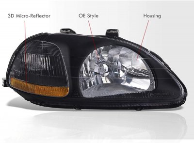 This Honda Civic Euro Headlights will fit 1996, 1997, 1998 Honda Civic. Replace or upgrade your Honda Civic Euro Headlights with our Honda Civic 1996-1998 Black Headlights.