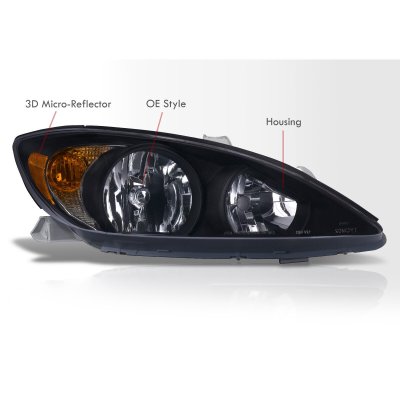 This Toyota Camry Euro Headlights will fit 2002, 2003, 2004 Toyota Camry. Replace or upgrade your Toyota Camry Euro Headlights with our Toyota Camry 2002-2004 Headlights Black.