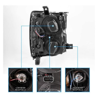• Chevy Silverado 3500HD 2015-2019 Black LED DRL Projector Headlights A1
