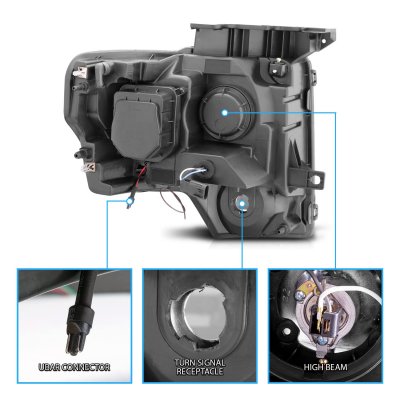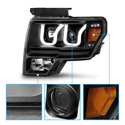 • Ford F150 2009-2014 Black Projector Headlights LED DRL Switchback A3