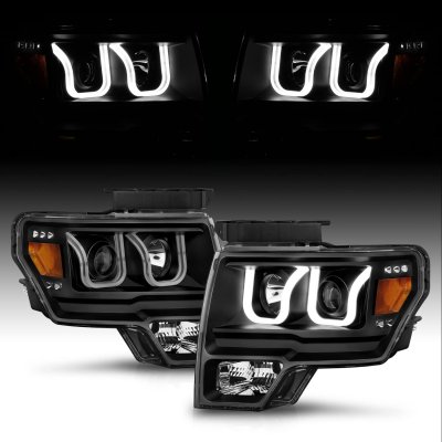 Ford F150 2009-2014 Black Projector Headlights LED DRL Switchback A3