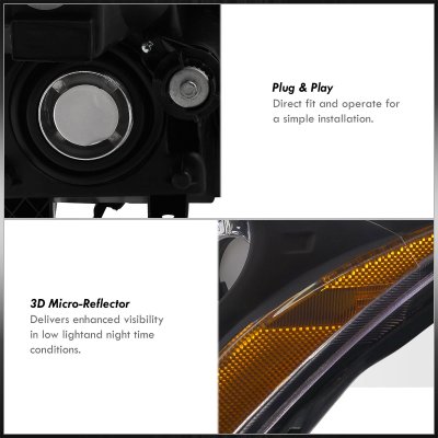 • Nissan Altima Sedan 2010-2012 Black Halogen Headlights