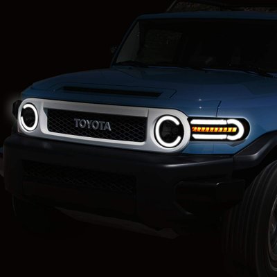 • Toyota FJ Cruiser 2007-2014 Black Smoked Headlights LED Halo DRL Signals