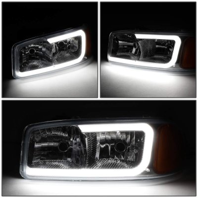 GMC Sierra 1500HD 2001-2007 Smoked Headlights Set LED DRL N2