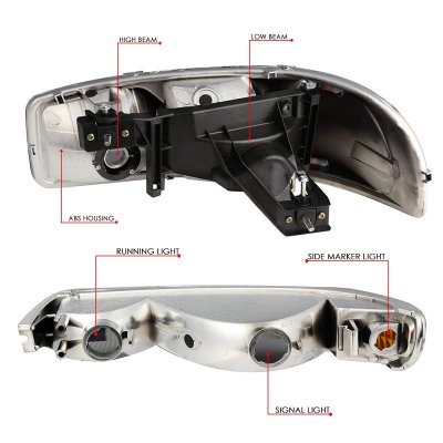 This GMC Sierra 2500 Euro Headlights will fit 1999, 2000, 2001, 2002, 2003, 2004 GMC Sierra 2500. Replace or upgrade your GMC Sierra 2500 Euro Headlights with our GMC Sierra 2500 1999-2004 Smoked Headlights Set LED DRL N2.