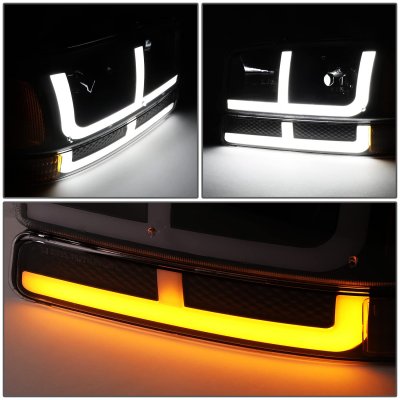 GMC Sierra 1500HD 2001-2007 Black LED DRL Headlights Switchback Bumper Lights N4