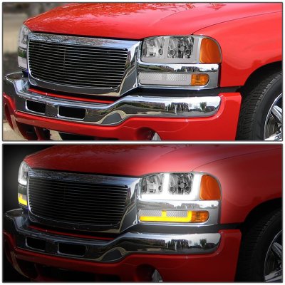 This GMC Yukon Euro Headlights will fit 2000, 2001, 2002, 2003, 2004, 2005, 2006 GMC Yukon. Replace or upgrade your GMC Yukon Euro Headlights with our GMC Yukon 2000-2006 LED DRL Headlights Switchback Bumper Lights N4.